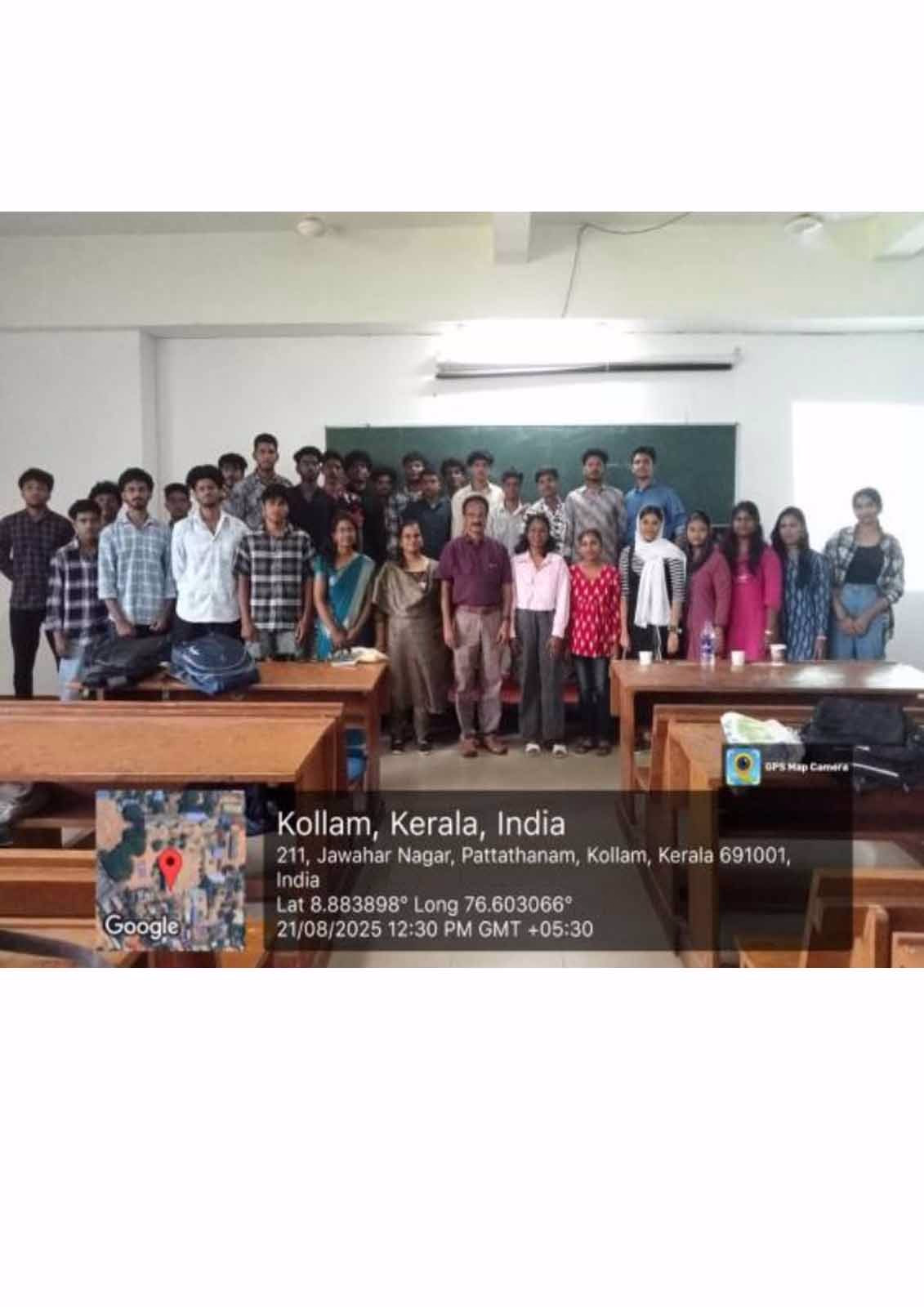 The session began with a guided tour of the department, where the students were introduced to key facilities such as classrooms, laboratories, seminar halls, project labs, and faculty cabins. Senior students and faculty members accompanied the new batch, explaining the purpose and functioning of each facility. Following the tour, a formal welcome address was delivered by the Head of the Department, Prof. Roy S.The HOD warmly greeted the new students and congratulated them on beginning their academic journey in the department.