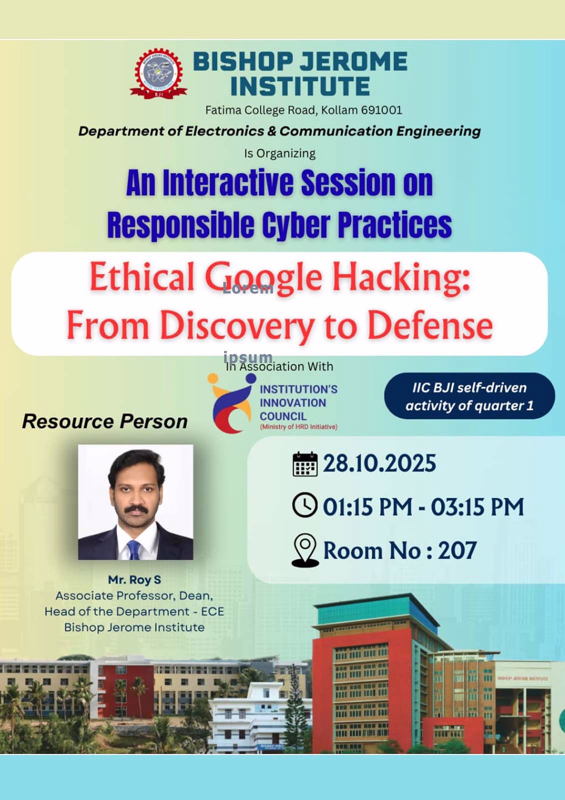 As part of National Cyber Security Awareness Month (NCSAM) 2025 – “Cyber Jagrit Bharat” (#CyberJagritBharat), a technical session on “Google Dorking” will be held for faculty in association with IIC–BJI as a self-driven activity.