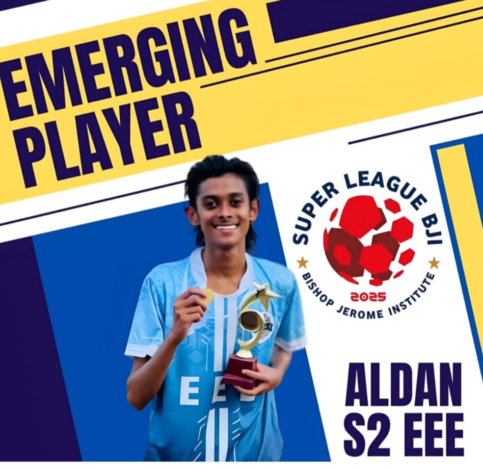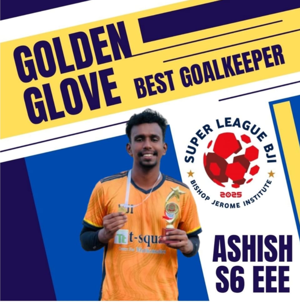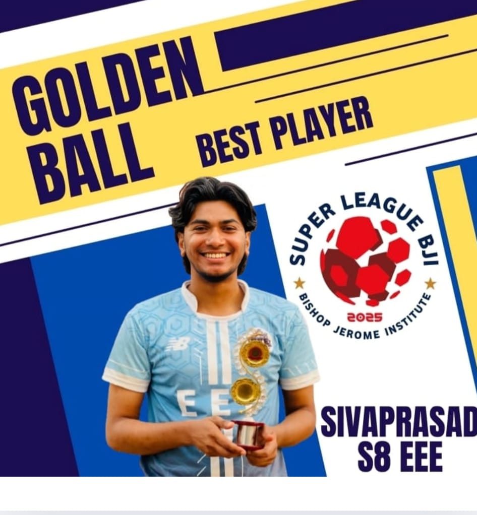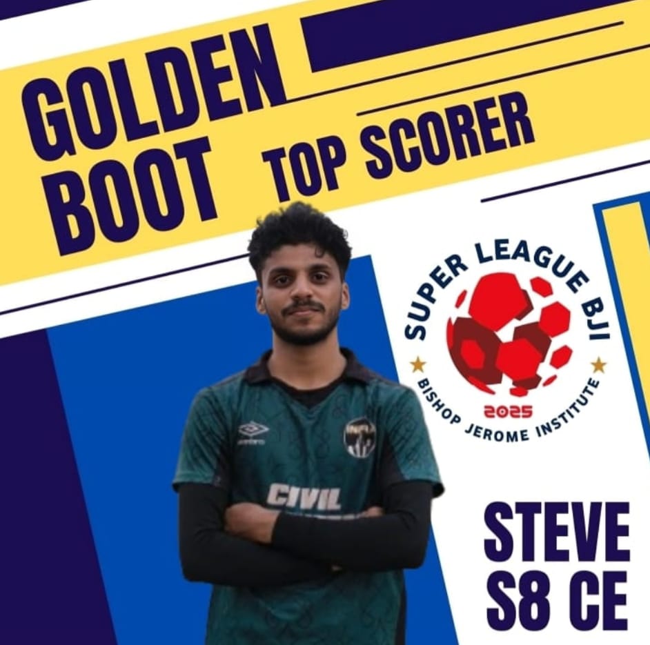 Individual brilliance was also celebrated-Aldan from S2 EEE was named the Emerging Player for his impressive performance throughout the tournament. Steve from S8 CE secured the Golden Boot for being the top scorer with a series of stunning goals. Ashish from S6 EEE earned the Golden Glove for his incredible goalkeeping skills that kept his team in the lead. Sivaprasad from S8 EEE was awarded the prestigious Golden Ball for being the tournament's Best Player, demonstrating leadership and consistent excellence. The league not only highlighted the athletic prowess of BJI students but also fostered unity, sportsmanship, and a deep passion for football.