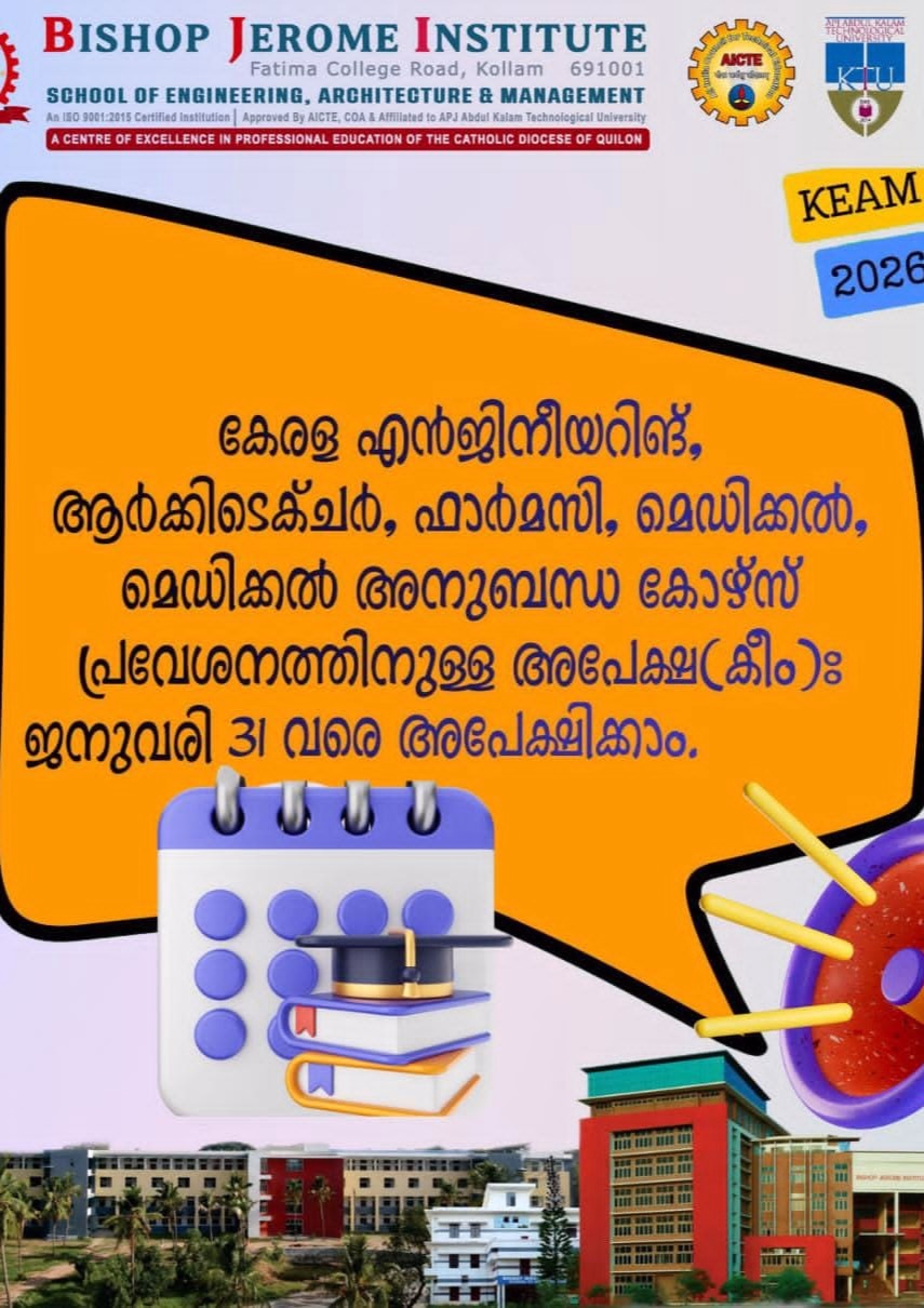 കേരള എഞ്ചിനീയറിംഗ് , ആർക്കിടെക്ചർ , ഫർമസി , മെഡിക്കൽ , മെഡിക്കൽ അനുബന്ധ കോഴ്സ് പ്രവേശനത്തിനുള്ള അപേക്ഷ (കീം ) : ജനുവരി 31 വരെ അപേക്ഷിക്കാം