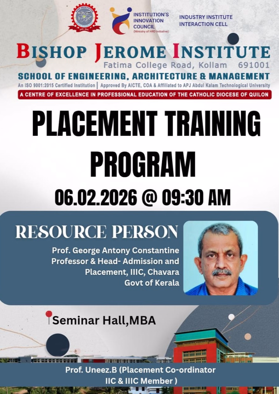 Kollam, Kerala – In a dedicated effort to bridge the gap between academia and industry, the Bishop Jerome Institute (BJI) is organizing a comprehensive Placement Training Program scheduled for tomorrow, February 6, 2026.
