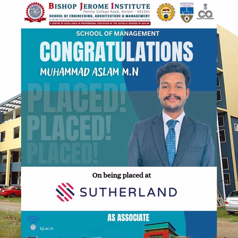 We are thrilled to announce that Muhammad Aslam M.N, a bright talent from our School of Management, has been successfully placed at Sutherland!