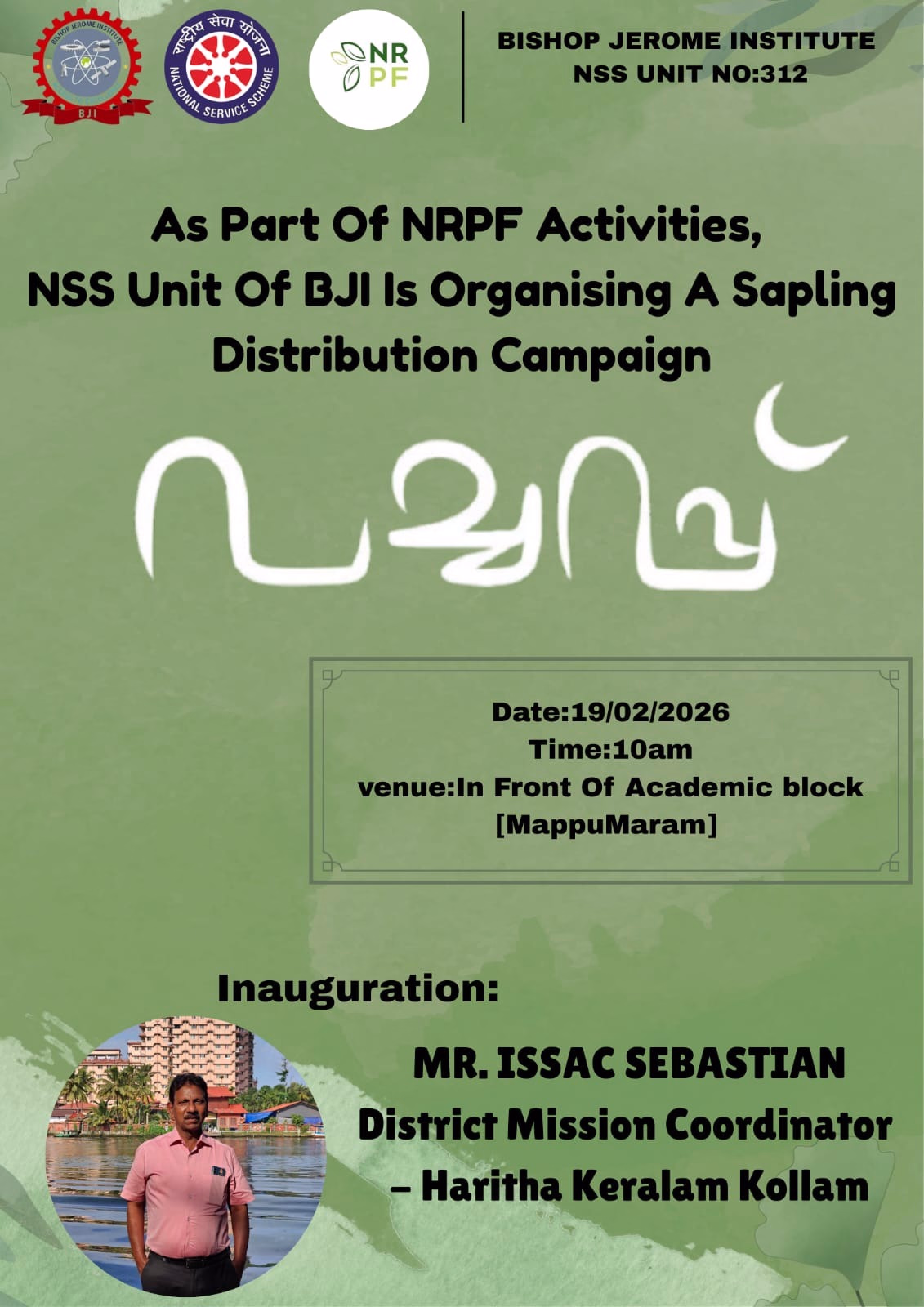 Kollam, February 19, 2026 — In a significant stride toward environmental sustainability, the National Service Scheme (NSS) Unit No: 312 of Bishop Jerome Institute (BJI) organized a successful sapling distribution campaign today as part of the National Resource Protection Force (NRPF) activities.