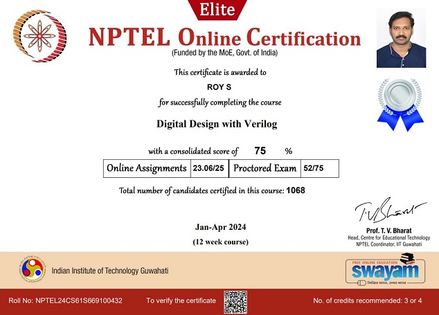 Digital Design with Verilog, National (Elite certificate) |